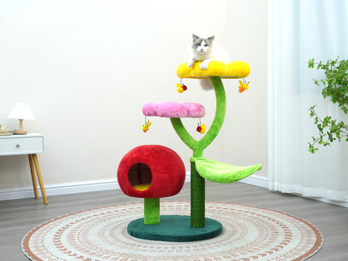 LOUNGE IN CAT BED - Cats love to nap, that is what makes our cat trees so appealing. Our Catry cat condo is a flower cat tree for your cute kitten to lazily recline. The whimsical design cat hammock tenderly holds your cat like a lover's hug, while providing a cute aesthetic for the owner. This cat tower offers 4 levels to bring your cat to new heights!