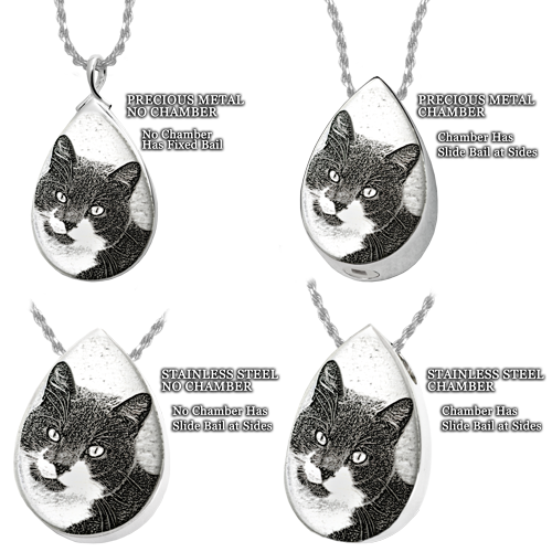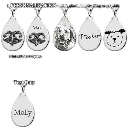 The Teardrop jewelry pendant is a popular favorite for creating personalized keepsakes to honor a loving pet. This piece can be engraved with a pet's photo, pawprint or nose print.