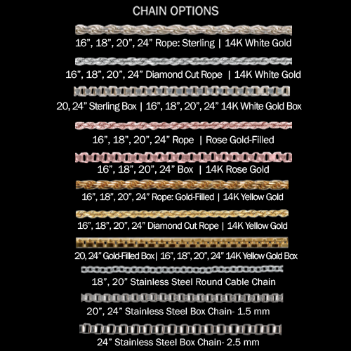 Metal Choice: 925 Sterling Silver, Stainless Steel, 14K Solid Yellow Gold, 14K Solid White Gold, 14K Solid Rose Gold or Platinum.