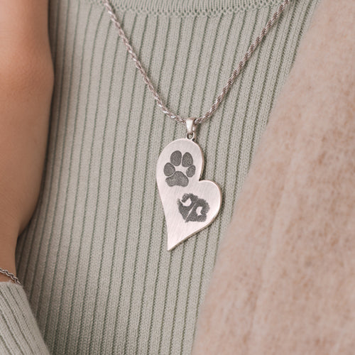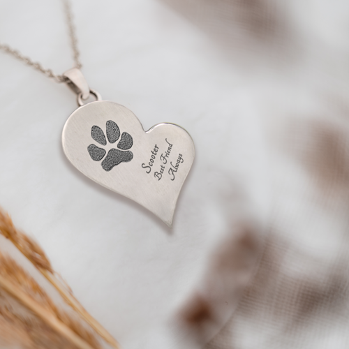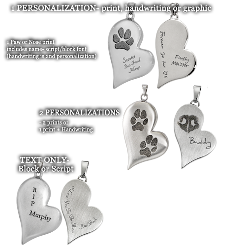 The Teardrop Heart expresses deep affection and is a favorite when engraved with a furry companion's nose or paw prints, standard handwriting or special text message in script or block font. This pendant does not allow photo engraving or 3D handwriting.