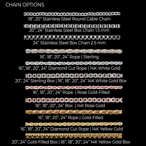 - Sterling Silver or Stainless Steel: 1 business day until pendant ships from the date we receive your file.